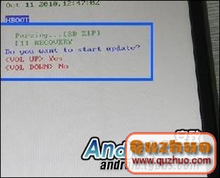 4.解壓後會提示是否需要刷機,按音量減為不升級,按音量鍵加為開始升級刷機