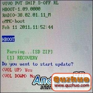 6、等待提示是否更新Recovery,按音量鍵上確定,開始刷新(出現頁面如下);