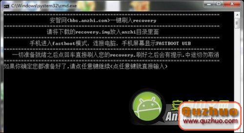 同樣,關閉快速啟動,關機,進入BOOTLOAD界面,再選擇其中的RECOVERY,進入RECOVERY,便可以刷機了.如果你使用的是我的ROM,裡面有一個"快速啟動"的軟件,選擇裡面的"恢復模式",便可進入RECOVERY刷機。