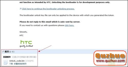 6.之後系統會給你注冊的郵箱給你發一個帶Unlock_code.bin附件的電子郵件,然後你把那個附件下載下來。