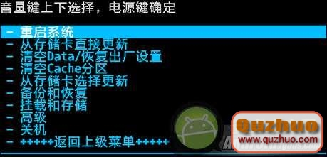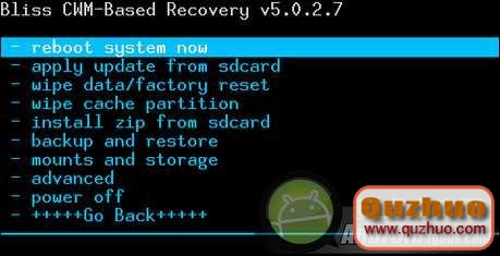 10、安裝成功之後,+++++返回上一級菜單+++++(+++++Go Back+++++)到recovery主界面和上面圖片一樣的。選擇下“重啟系統"(reboot system now)確認就可以了。