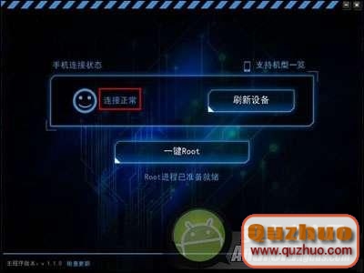 3、運行kingroot 工具,手機如果跟www.shuleba.com電腦連接正常後,軟件會提示連接正常。