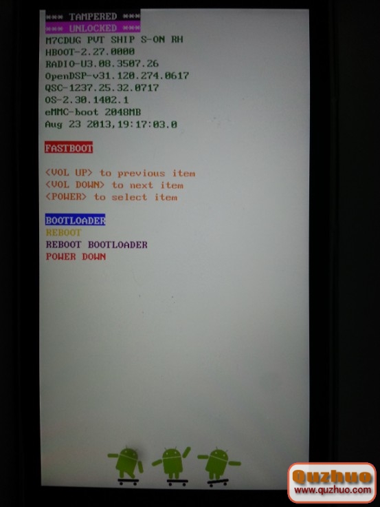 判斷方法 取出手機電池5秒再裝入,手機關機狀態下,保持按住音量下鍵和開機鍵10秒左右,進入Hboot模式後松手; 1.未解鎖狀態 手機未解鎖狀態:第一