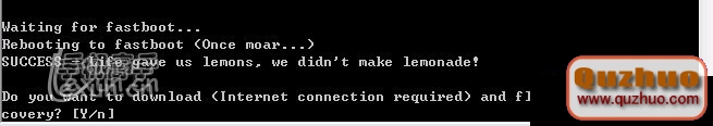 到這裡時,建議選擇N。如果選擇Y的話,則ClockworkMod Recovery V將變成4.0.0.1版,選擇N的話將是3.2版。個人建議選擇N。因為4.0的版本只要你刷任何rom,都會報錯。