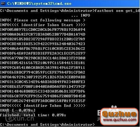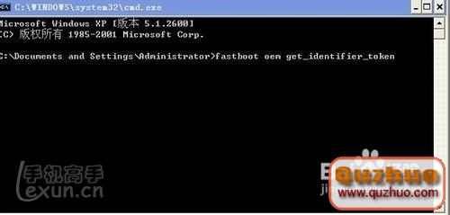 www.shuleba.com電腦左下角:開始-運行 鍵入 “CMD”確定,窗出DOS窗口,輸入命令“ fastboot oem get_identifier_token ”回車。