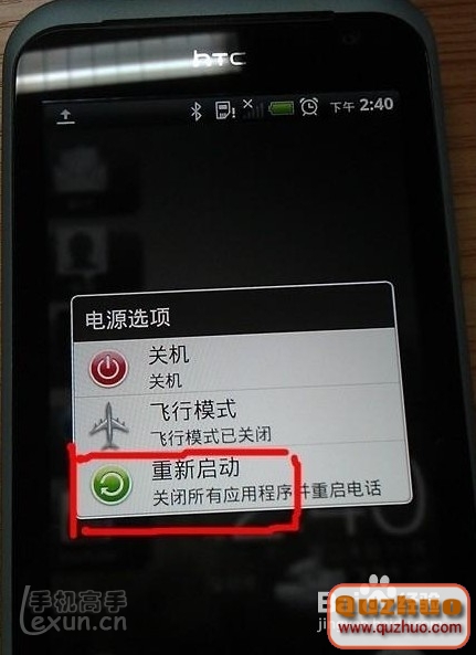 手機進入HBOOT。因為此手機不能像其他手機那樣直接拔電池進入hboot。所以我們先長按電源鍵,選擇【重新啟動】,待畫面變黑,迅速長按音量向下鍵,直至如入hboot狀態。
