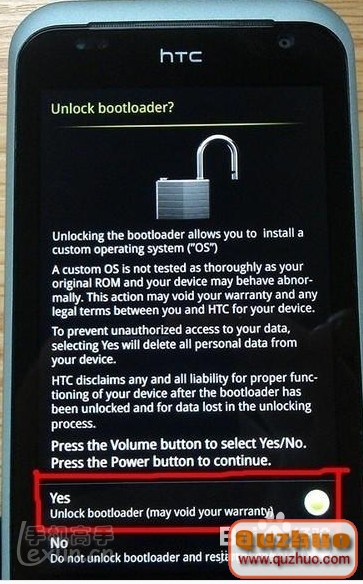 按一次上音量按鍵選擇YES,點電源按鍵確認.重啟即解鎖成功