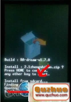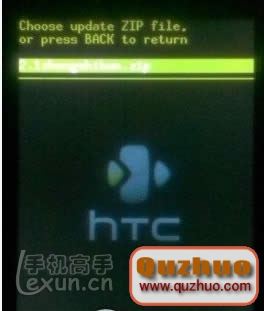 2:將軌跡球滑動到flash zip from sdcard,這個英文的意思是從內存卡中讀取zip刷機文件,然後按小房子鍵進入如圖。