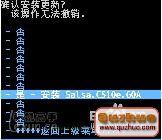 8、選擇你要更新的升級包 按開機鍵確認 進入以下界面 如下圖