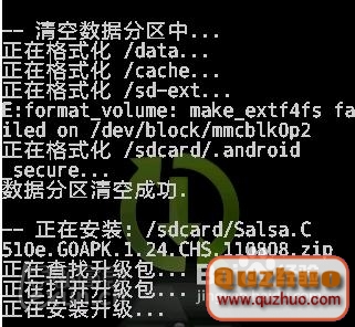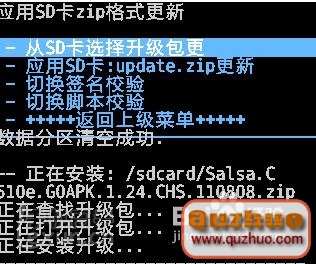 6、使用音量鍵選擇 -從SD卡選擇更新 按開機鍵確認 進入以下界面 如下圖