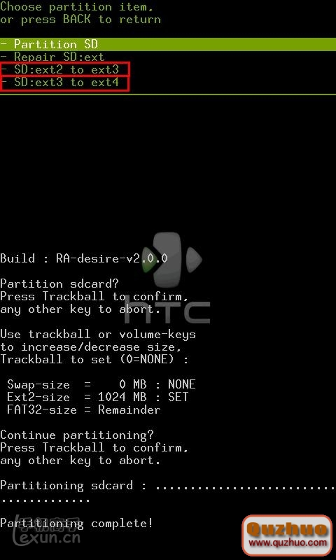 6、一碗茶功夫分區完畢,返回到如圖的界面,然後再依次選中 SD:ext2 to ext3 , SD:ext3 to ext4。