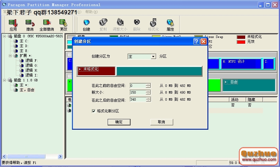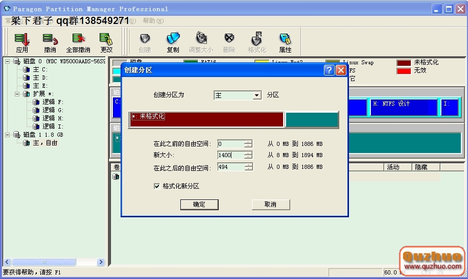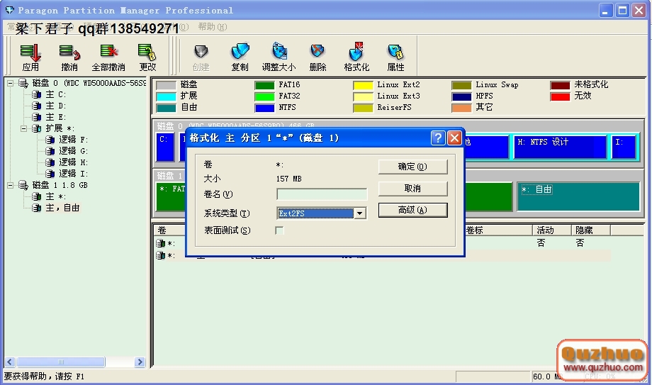 立ext2分區操作跟建立fat32類似,一共要建立3個ext2分區,第一個分區EXT2(大小150M左右,用於安裝系統),第二個分區EXT2(大小250M左右,用於數據,即安裝軟件等等作用),第三個分區EXT2(大小50M左右,用於緩沖區)