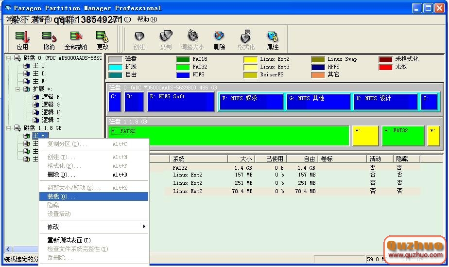 最後你會發現www.shuleba.com電腦不顯示內存卡,可以在fat32分區點右鍵,再點裝載,確定,www.shuleba.com電腦就會顯示內存卡了