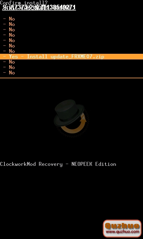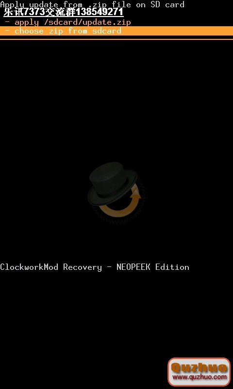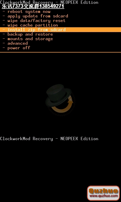 這裡的操作是音量調整鍵主光標上下,撥號鍵是確定命令,返回鍵就是返回命令,接下來按圖操作,選擇install zip from sdcard,按撥號鍵確認