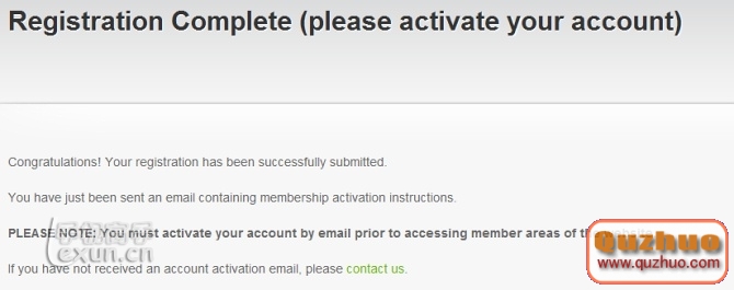 點擊「Register 」按鈕提交注冊信息後,會提示注冊已經成功,並且需要您前往注冊郵箱收取激活郵件激活注冊