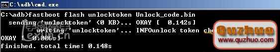 九、回到剛才的命令提示符界面,輸入:fastboot flash unlocktoken Unlock_code.bin回車,會提示發送成功(圖七)。
