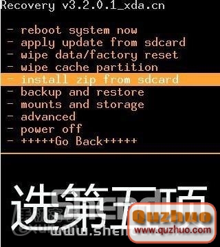 2、利用音量鍵選擇第五項:Install zip form sdcard(選擇從SD卡更新),用電源鍵確定。