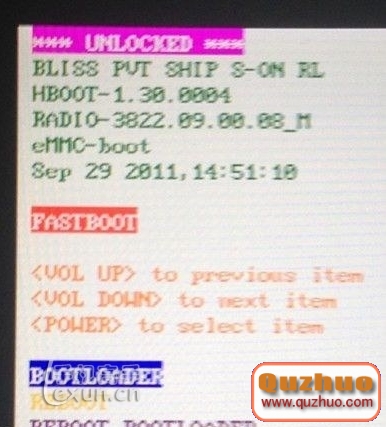 2.解鎖成功後手機進入hboot界面第一行顯示***UNLOCKED***即為解鎖成功