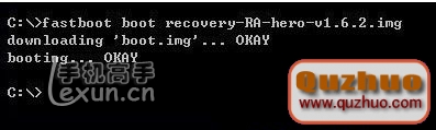 比如:fastboot boot recovery-RA-hero-v1.6.2.img