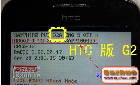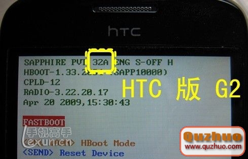 32A:CPU型號是7200A,RAM是288MB,也就大家常說的HTC版G2。