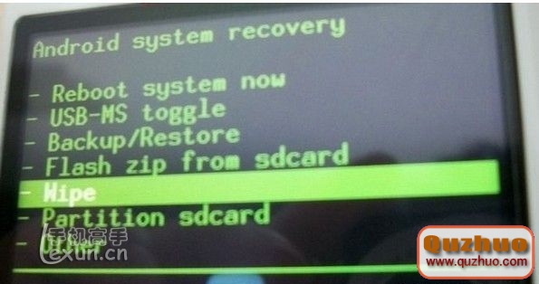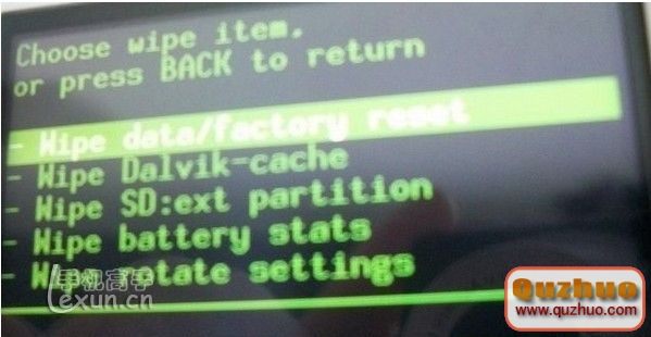 三。首先選擇wipe date(也就是清空數據恢復出廠狀態)這個選項,對系統進行清空。注意確認清空後需要點擊【房子】才能開始清空
