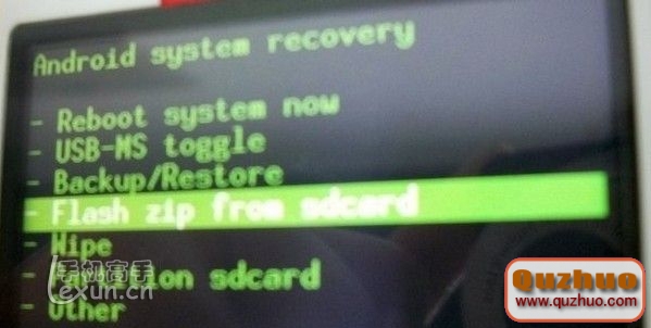 四、清空之後就會返回到RECOVERY刷機界面,選擇從SD卡刷新ROM,不同的刷機界面文字顯示不同,一般為flash zip from sdcard 或者 apply sdcard:update.zip 點擊。
