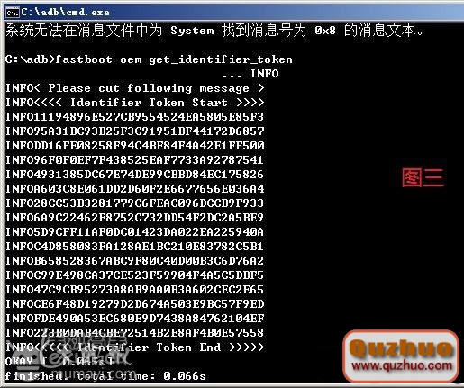 九、回到剛才的命令提示符界面,輸入:fastboot flash unlocktoken Unlock_code.bin回車,會提示發送成功(圖七)。
