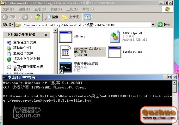 放到adb+fastboot“解開後的文件夾裡。雙擊裡面那個“雙擊打開DOS終端”(看下圖)