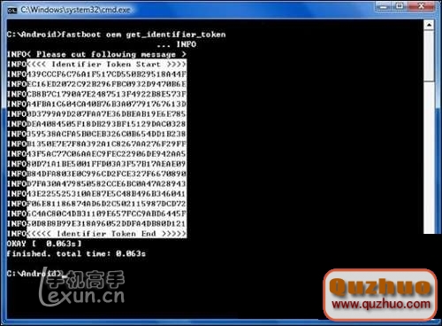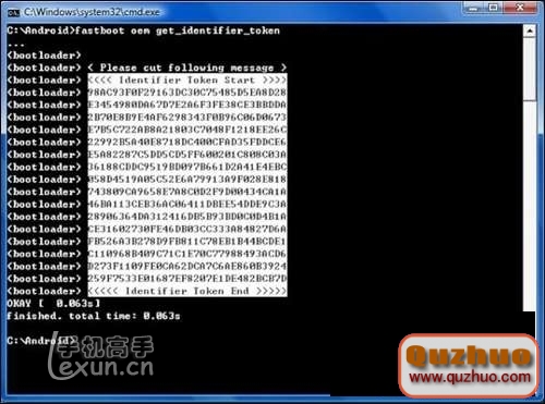 14,在cmd框內輸入:fastboot oem get_identifier_token