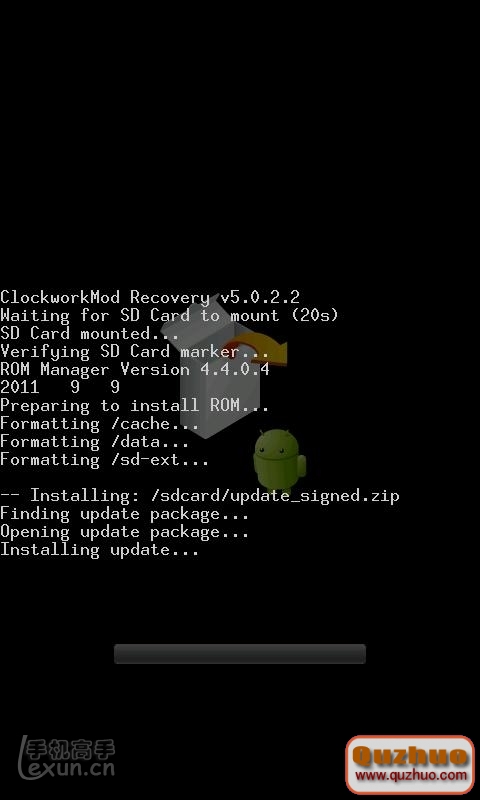 5、確認刷機後,系統自動重啟,進入Recovery,等待刷機