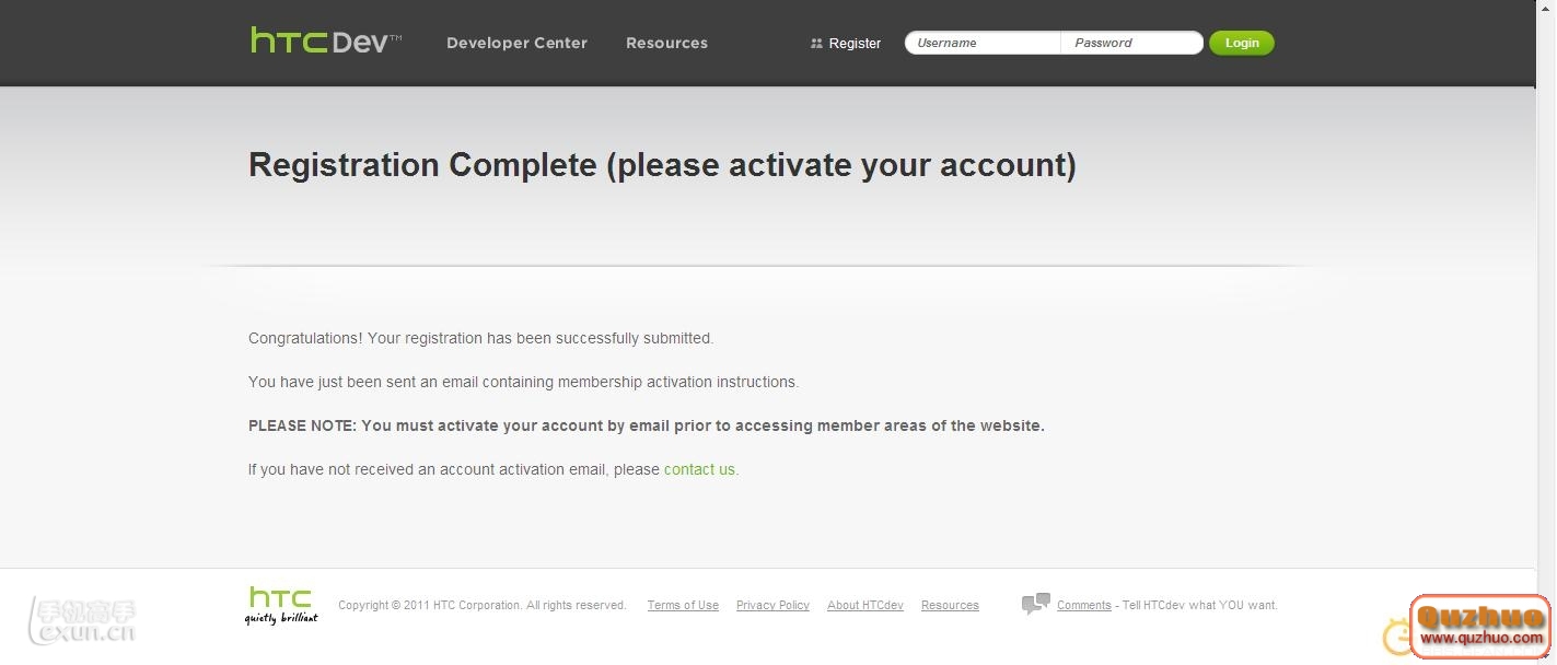 這時候會跳轉到HTCDEV網站,顯示如下畫面,那就證明賬號已經激活了哦!