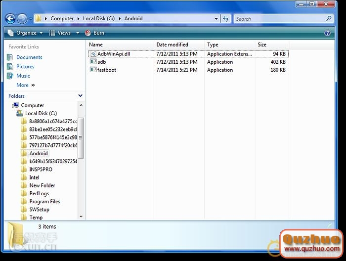 cd c:Android(回車) (這裡的c:Android是你放那3個文件的文件夾路徑)