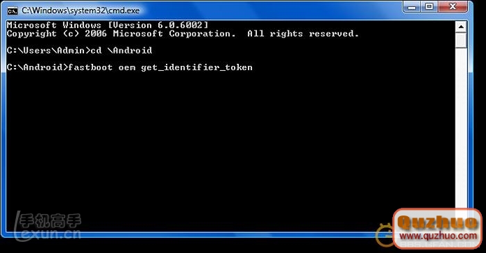 繼續前面的操作,手機處於fastboot界面,在命令框內輸入: