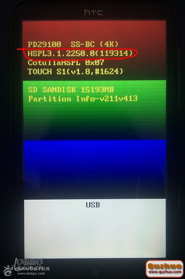 前提是你的手機三色屏顯示的是HSPL,如下圖,如果你的三色屏顯示的是spl那麼就直接刷官方rom。
