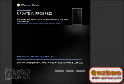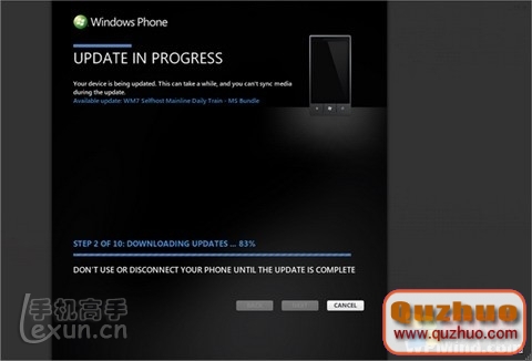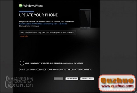 當一個更新可用的時候我們同時也會通過通知服務告訴手機用戶。當你看到它的時候,把你的手機通過USB線纜連接到www.shuleba.com電腦上運行Zune桌面應用。在那時,僅僅點幾下鼠標升級包就會自動下載並更新到你的手機上。同時一個還原點也會被建立,所有一切都是自動完成的。