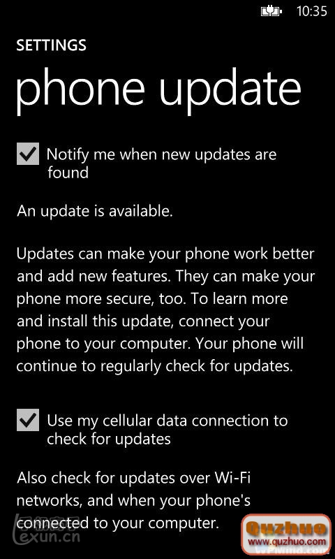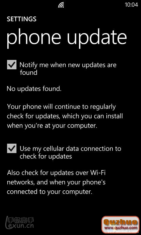 提示:您可以對通知與自動檢查更新的連接方式進行自定義設置。默認情況下,您的電話使用您的蜂窩數據連接來檢查更新,發現更新時會自動的通知您。
