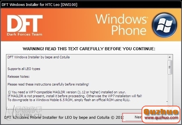 解壓你下載來的wp7 rom,雙擊其中的DWI.exe,