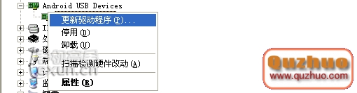 右鍵黃色歎號的android設備(歎號代表設備驅動異常),選擇更新驅動程序--從列表或指定位置安裝