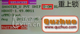 b.官解後重新上鎖(上鎖後無法甜椒刷機);第一行出現粉色底字RELOCKED,第二行PVT SHIP S-ON,如下圖
