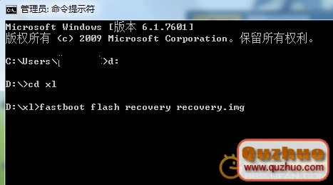 7.然後,進入你下載recovery刷機包解壓後的文件夾,如你將其解壓放在D盤的xl目錄內,這裡就輸入
