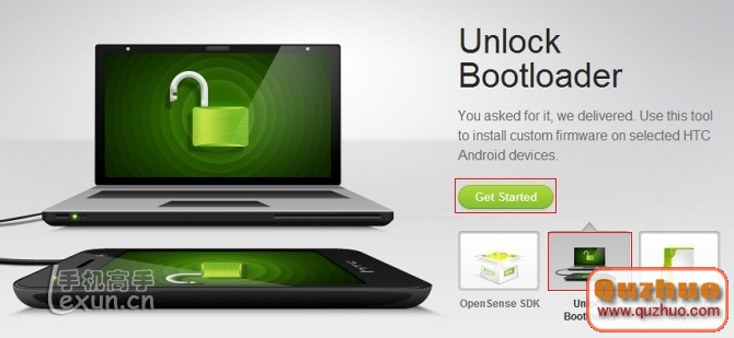 4).登陸賬號並選擇「UnlockBootloader」點擊「Get Started」