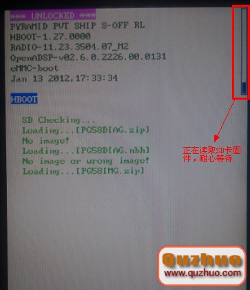 (如果無加載界面,說明手機不在hboot模式或者手機是“木馬機”;木馬機先軟解,謹慎操作,具有一定風險)