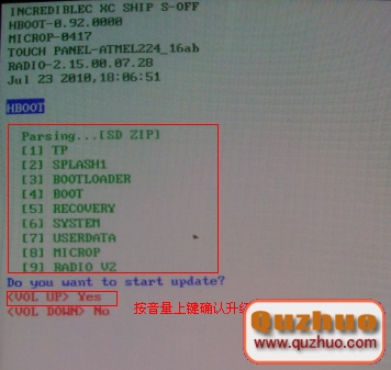按音量上鍵開始升級,出現如下圖所示後耐心等待完成,中途右邊會出現升級進度,中途不能扣電池;