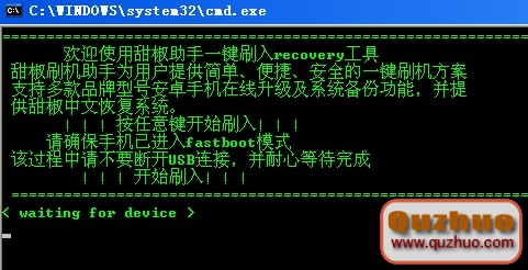 在fastboot模式下,使用數據線連接手機與www.shuleba.com電腦,執行“刷入recovery.bat”,等待完成即可