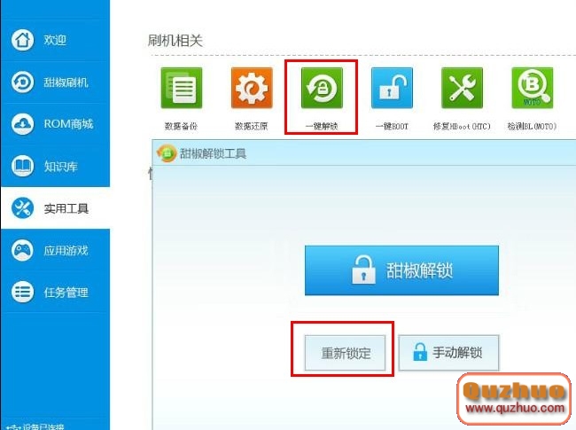 解鎖可以使用甜椒助手使用工具中的“重鎖工具”即可