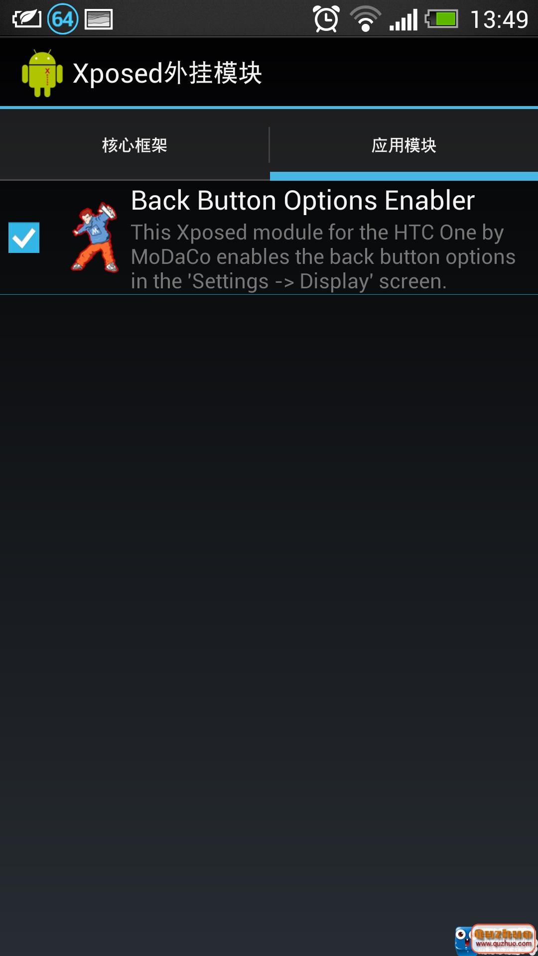 步驟二:再次進入Xposed Installer,點擊“應用模塊”界面,加載back button options enablerm模塊。