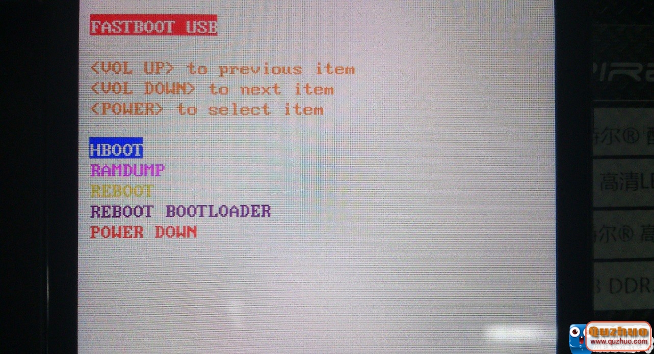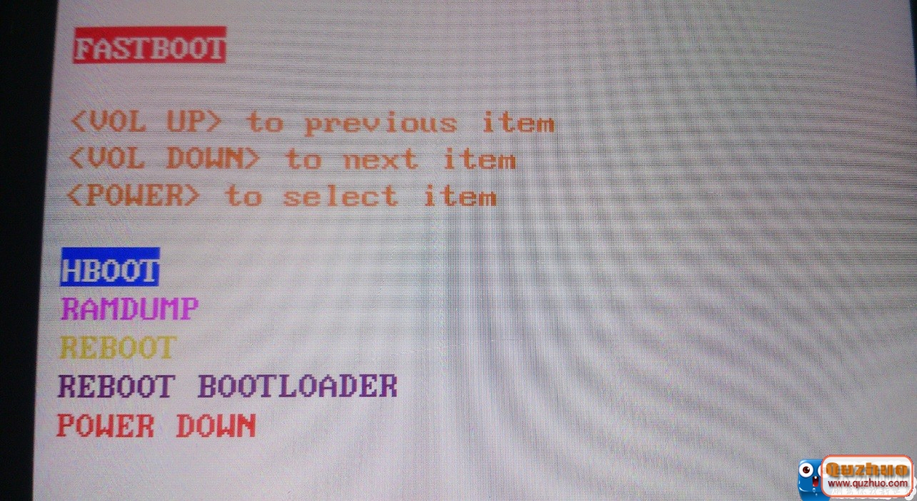 1,進入方法:在完全關機的狀態下,按住音量減少鍵,然後按power鍵,直到看到Hboot界面,然後用音量鍵控制光標上下移動,選擇fastboot,按電源鍵確定。