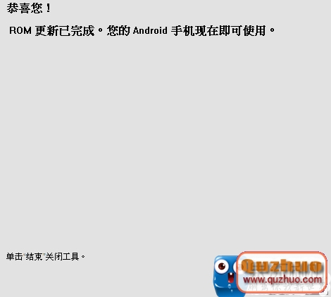 7.如果顯示以下畫面,表示 RUU 更新已完成。單擊結束退出工具。