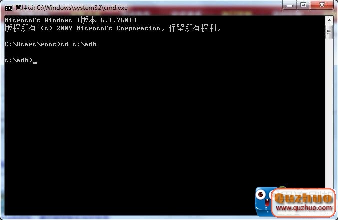3、 輸入cd c:\adb回車,進入ADB所在目錄