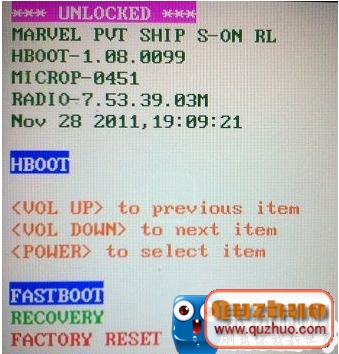 13、系統已經恢復出廠設置了,再進入hboot可以看到最上面一行是“UNLOCKED”,解鎖成功!